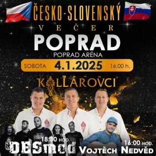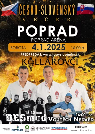 Rozlúčte sa so starým rokom a privítajte nový rok 2025 na nezabudnuteľnom koncerte v spojení dvoch skvelých slovenských kapiel - Kollárovcov a DESmodu, kde zaznejú všetky ich známe hity.