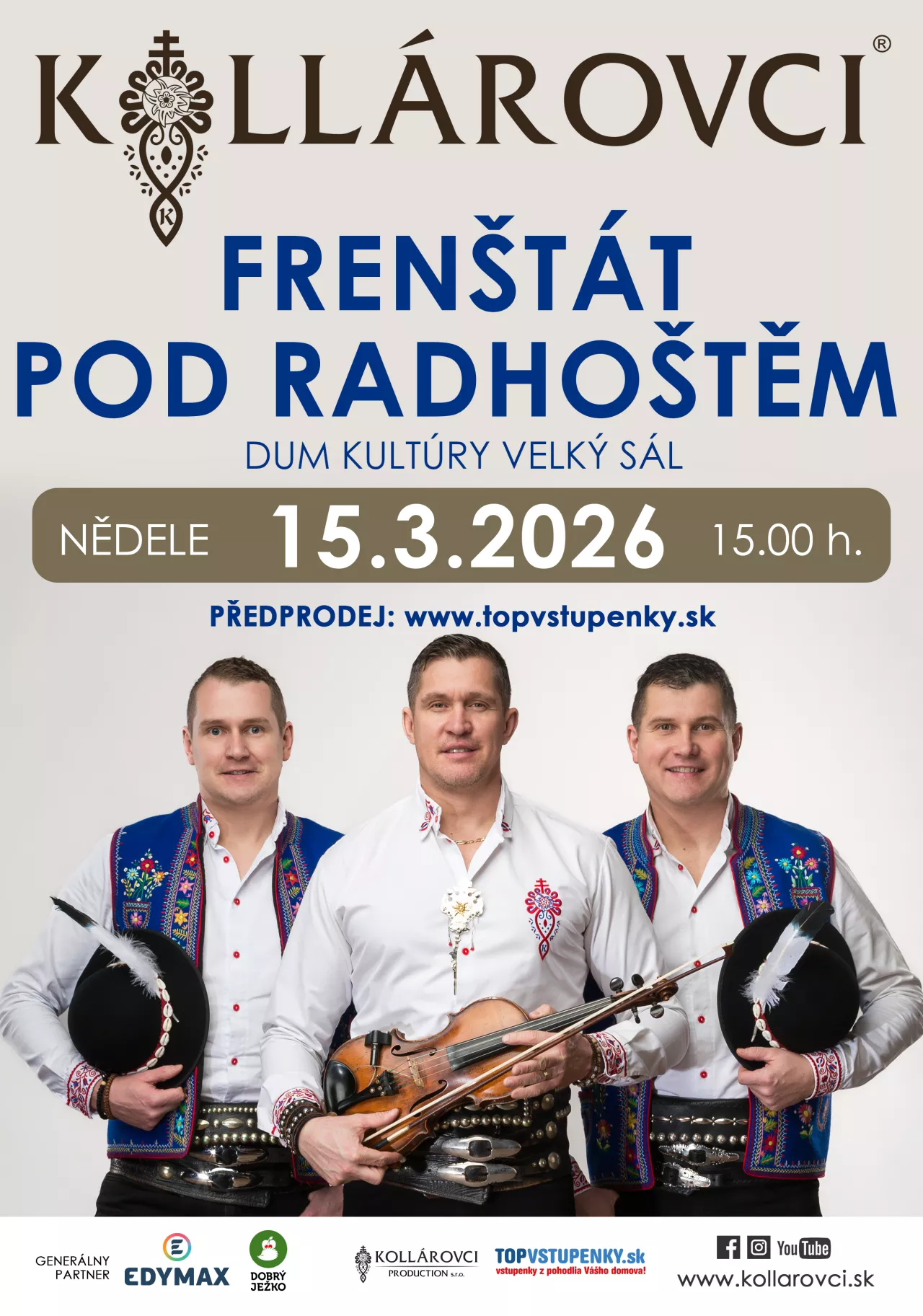 15.03.2026 nedeľa o 15:00 Frenštát pod Radhoštěm KOLLÁROVCI CZ TOUR 2026 - Frenštát pod Radhoštěm