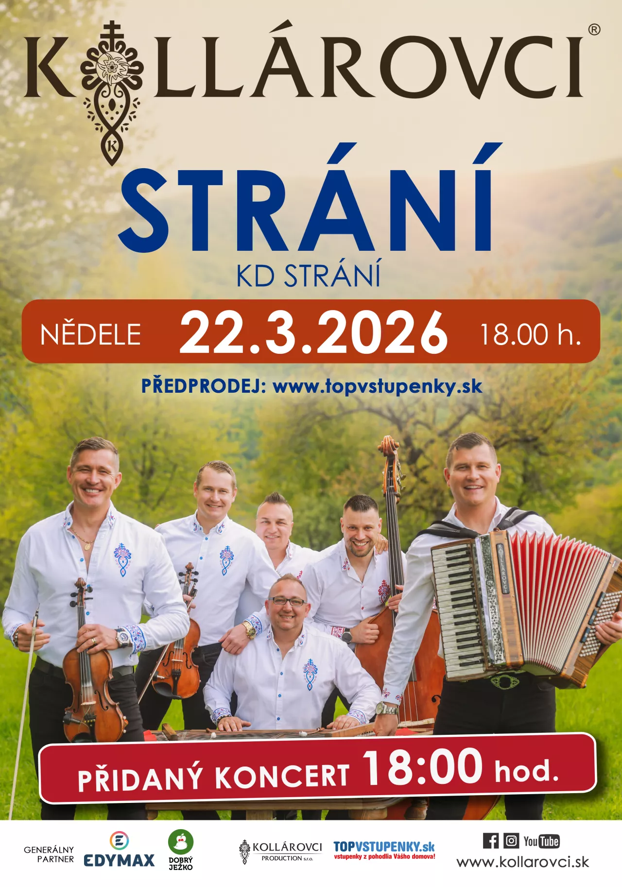 22.03.2026 nedeľa o 18:00 Strání KOLLÁROVCI CZ TOUR 2026 - Strání (přidaný koncert 18.00hod)
