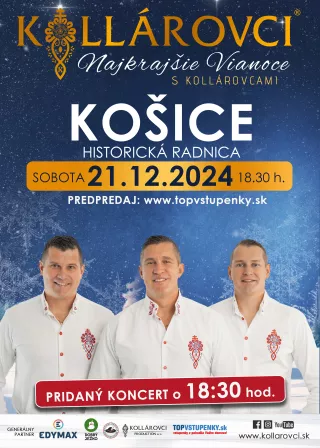 21.12.2024 sobota o 18:30 Košice Najkrajšie VIANOCE s KOLLÁROVCAMI 2024 - Košice (prídavný koncert)