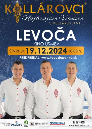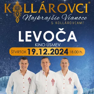 Priatelia, príďte aj Vy zažiť nádhernú vianočnú atmosféru v podaní kapely Kollárovci, kde zaznejú vianočné koledy a taktiež aj ich známe hity. Doprajte si predvianočné hudobno-zábavné uvoľnenie v podaní jedinečnej kapely KOLLÁROVCI, kde načerpáte veľa pozitívnej energie.