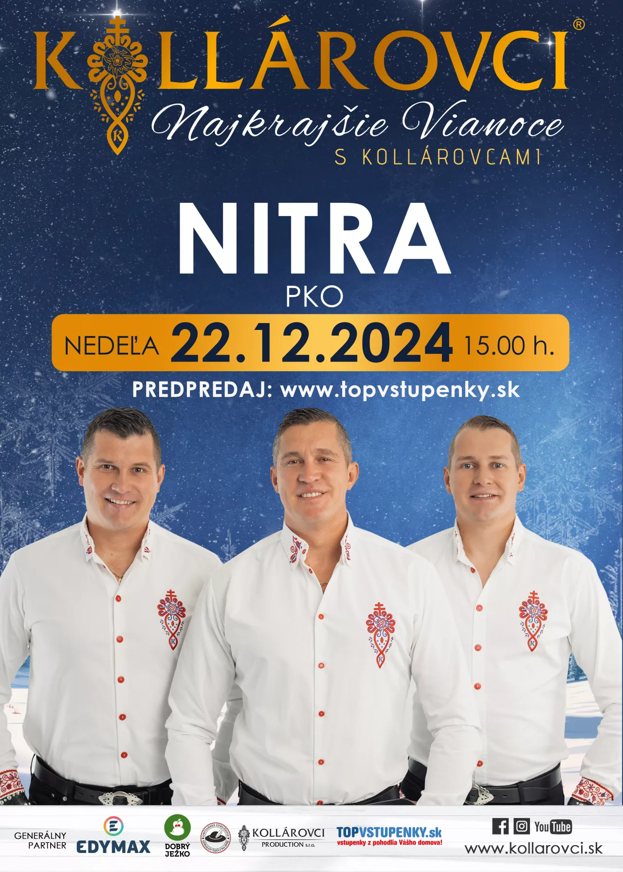 Priatelia, príďte aj Vy zažiť nádhernú vianočnú atmosféru v podaní kapely Kollárovci, kde zaznejú vianočné koledy a taktiež aj ich známe hity. Doprajte si predvianočné hudobno-zábavné uvoľnenie v podaní jedinečnej kapely KOLLÁROVCI, kde načerpáte veľa pozitívnej energie.