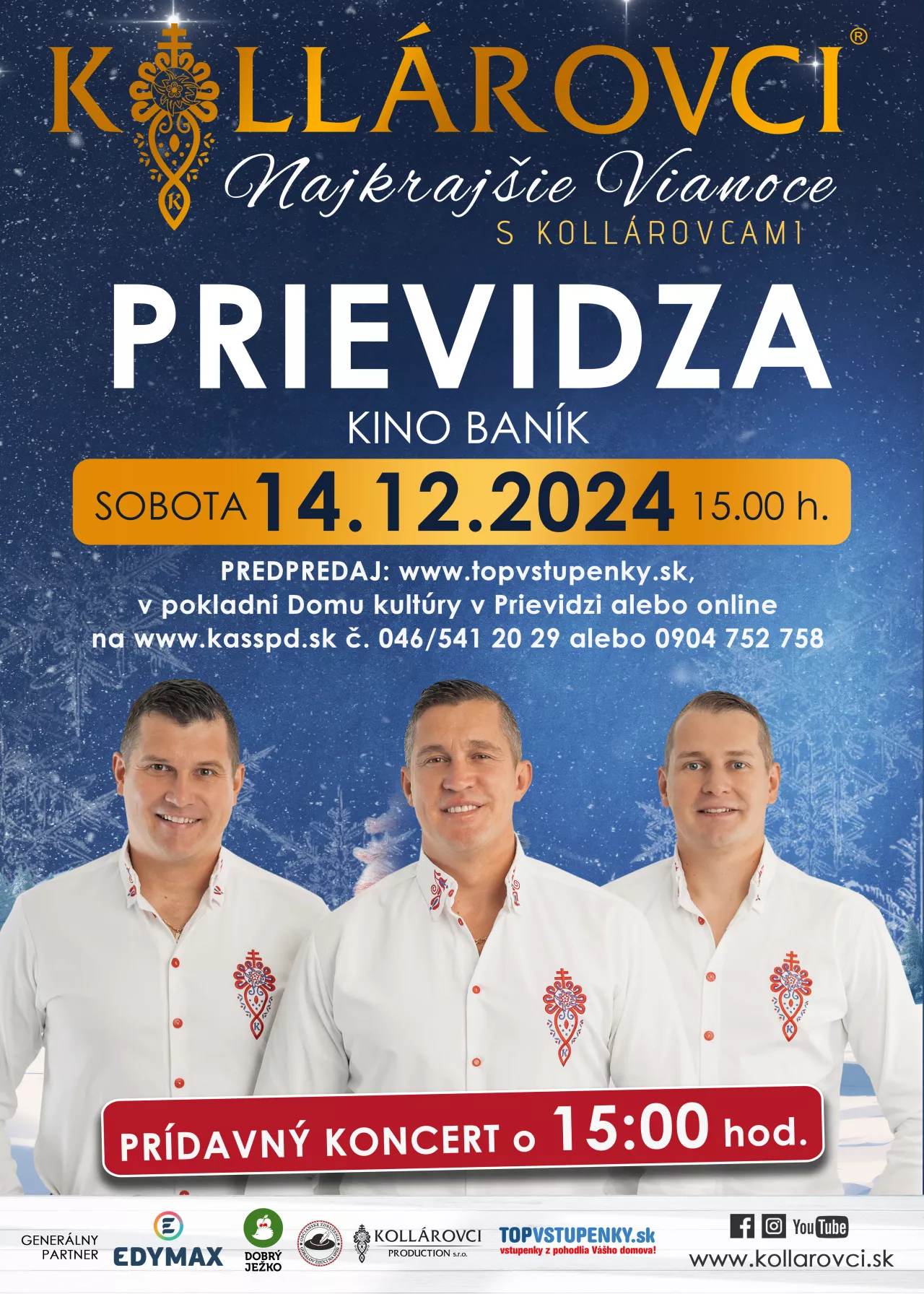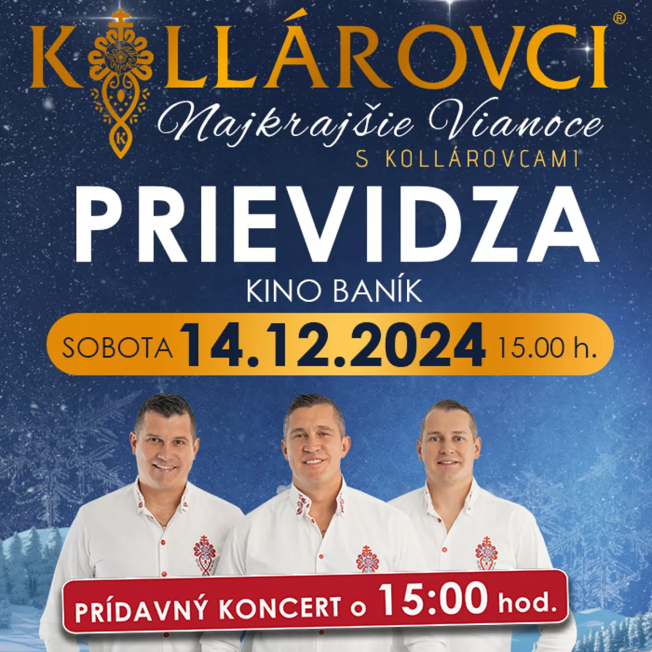 14.12.2024 sobota o 15:00 Prievidza Najkrajšie VIANOCE s KOLLÁROVCAMI 2024 - Prievidza (prídavný koncert o 15.00)