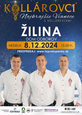 Priatelia, príďte aj Vy zažiť nádhernú vianočnú atmosféru v podaní kapely Kollárovci, kde zaznejú vianočné koledy a taktiež aj ich známe hity. Doprajte si predvianočné hudobno-zábavné uvoľnenie v podaní jedinečnej kapely KOLLÁROVCI, kde načerpáte veľa pozitívnej energie.