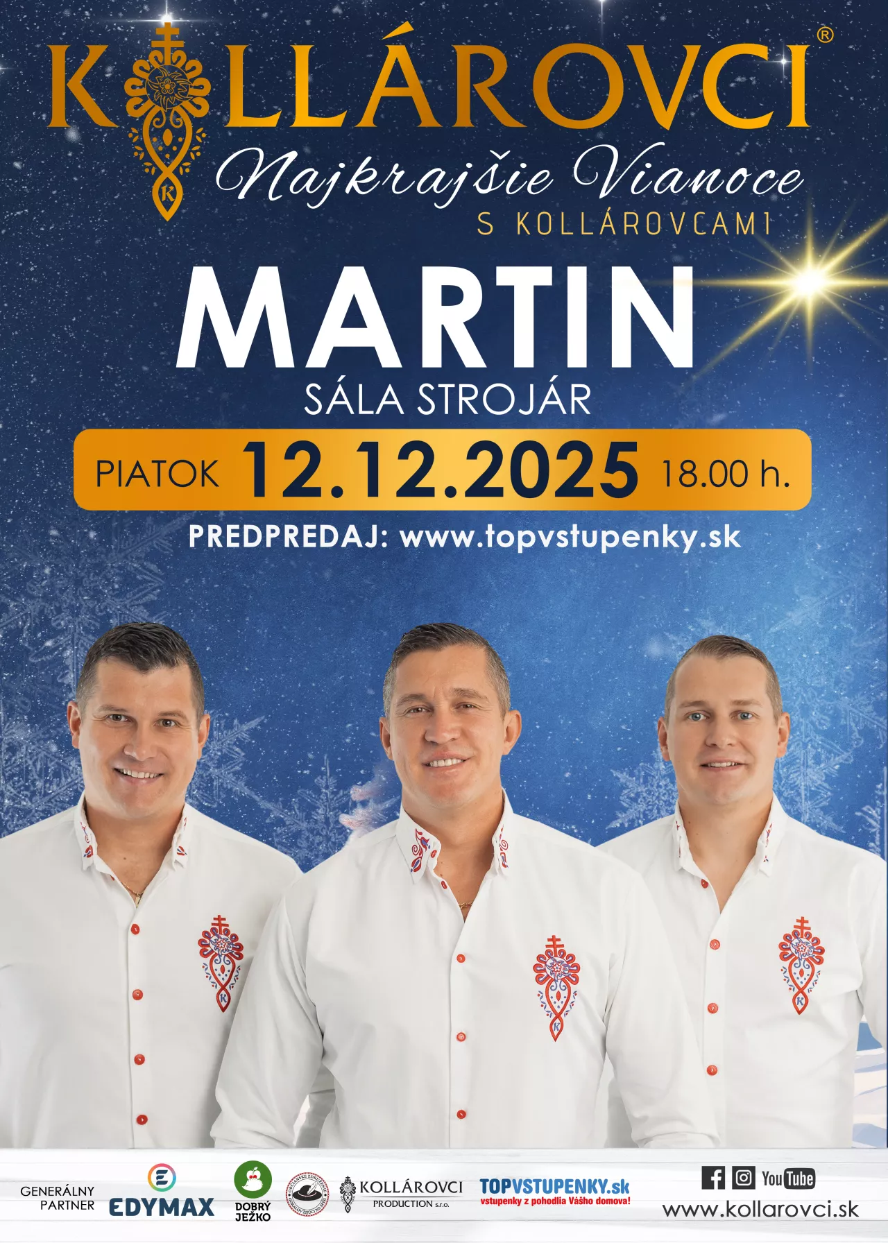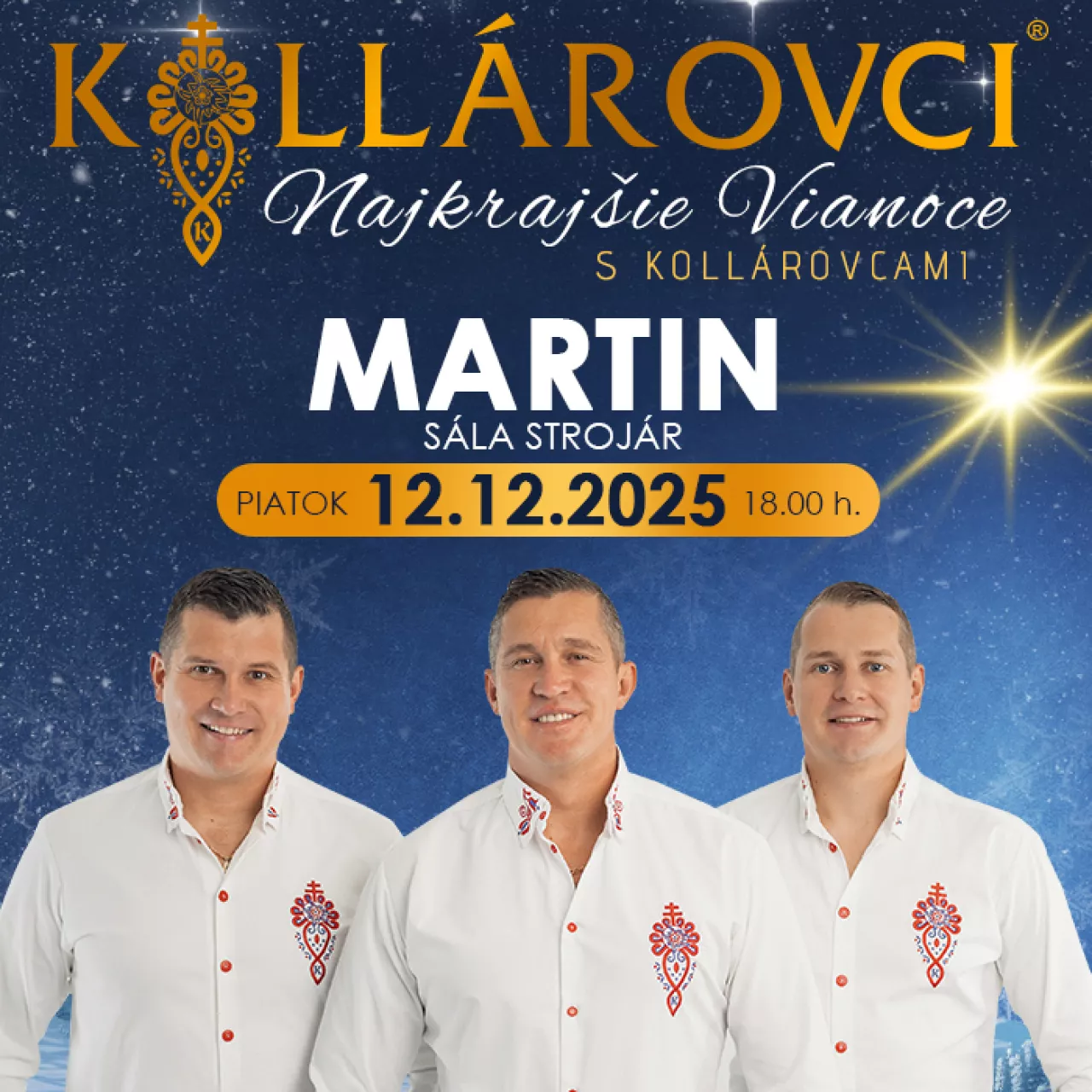 Priatelia, príďte aj Vy zažiť nádhernú vianočnú atmosféru v podaní kapely Kollárovci, kde zaznejú vianočné koledy a taktiež aj ich známe hity. Doprajte si predvianočné hudobno-zábavné uvoľnenie v podaní jedinečnej kapely KOLLÁROVCI, kde načerpáte veľa pozitívnej energie.