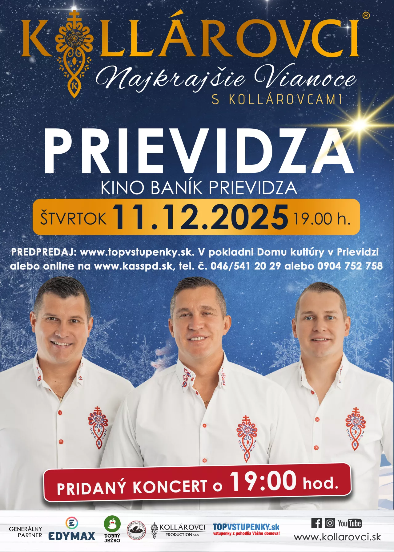 Priatelia, príďte aj Vy zažiť nádhernú vianočnú atmosféru v podaní kapely Kollárovci, kde zaznejú vianočné koledy a taktiež aj ich známe hity. Doprajte si predvianočné hudobno-zábavné uvoľnenie v podaní jedinečnej kapely KOLLÁROVCI, kde načerpáte veľa pozitívnej energie.