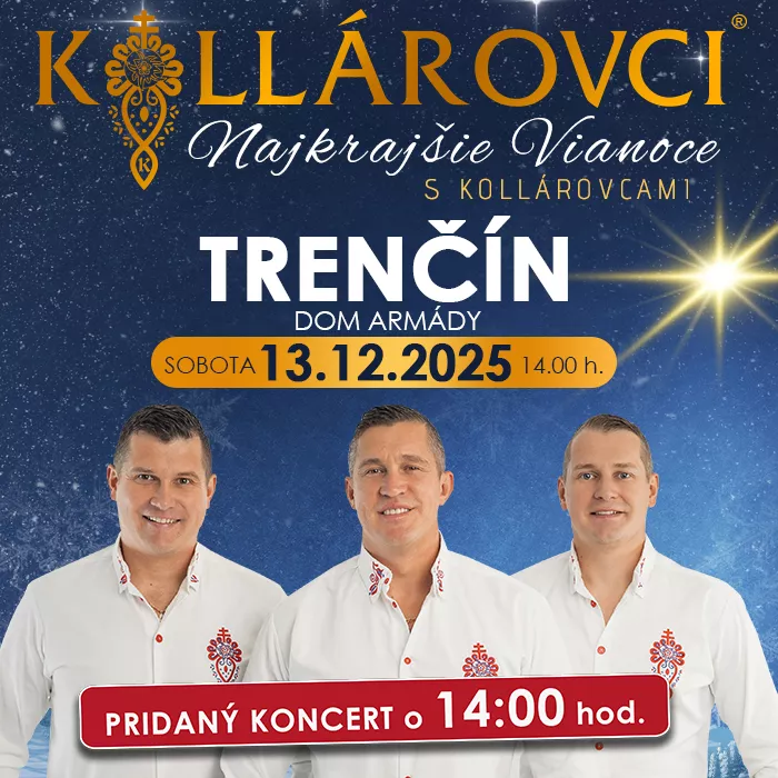 Priatelia, príďte aj Vy zažiť nádhernú vianočnú atmosféru v podaní kapely Kollárovci, kde zaznejú vianočné koledy a taktiež aj ich známe hity. Doprajte si predvianočné hudobno-zábavné uvoľnenie v podaní jedinečnej kapely KOLLÁROVCI, kde načerpáte veľa pozitívnej energie.