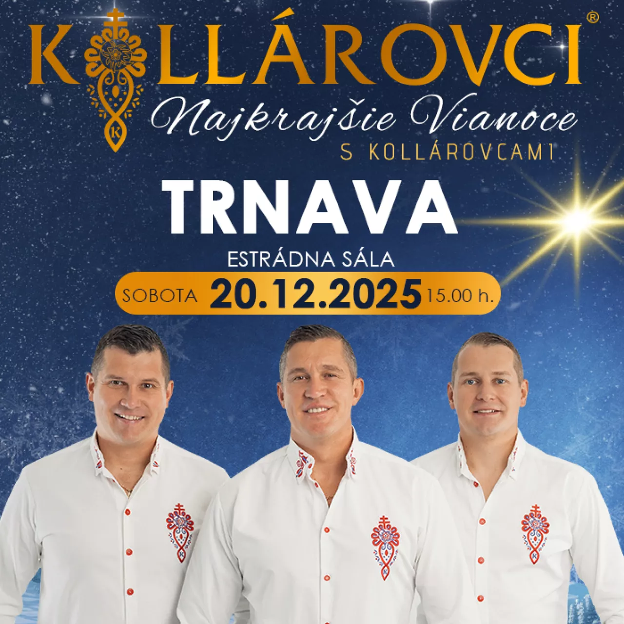 Priatelia, príďte aj Vy zažiť nádhernú vianočnú atmosféru v podaní kapely Kollárovci, kde zaznejú vianočné koledy a taktiež aj ich známe hity. Doprajte si predvianočné hudobno-zábavné uvoľnenie v podaní jedinečnej kapely KOLLÁROVCI, kde načerpáte veľa pozitívnej energie.