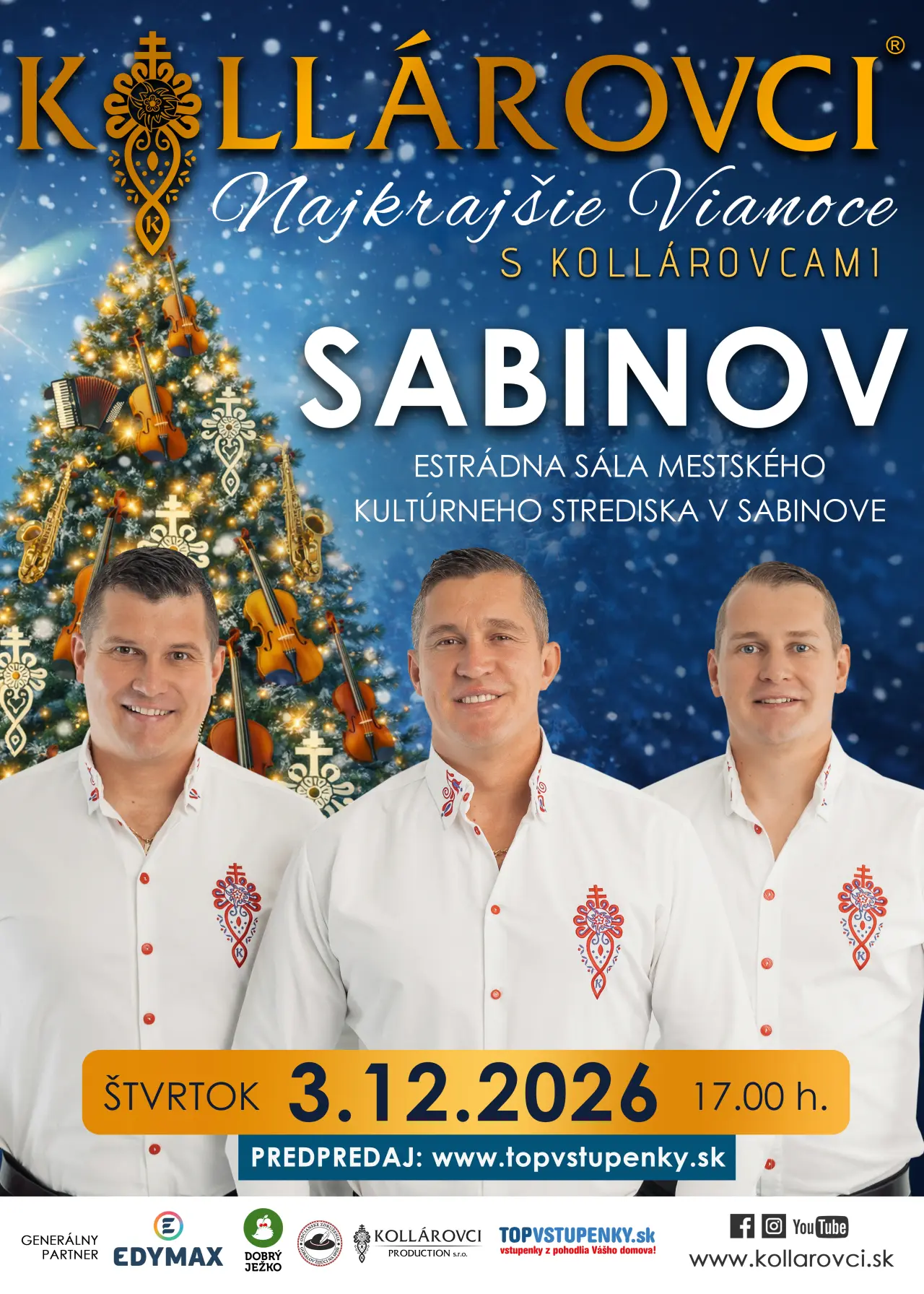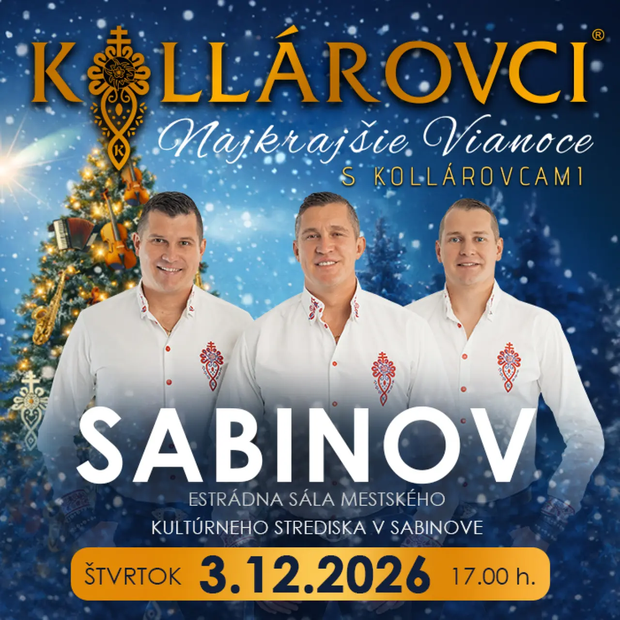 Priatelia, príďte aj Vy zažiť nádhernú vianočnú atmosféru v podaní kapely Kollárovci, kde zaznejú vianočné koledy a taktiež aj ich známe hity. Doprajte si predvianočné hudobno-zábavné uvoľnenie v podaní jedinečnej kapely KOLLÁROVCI, kde načerpáte veľa pozitívnej energie.