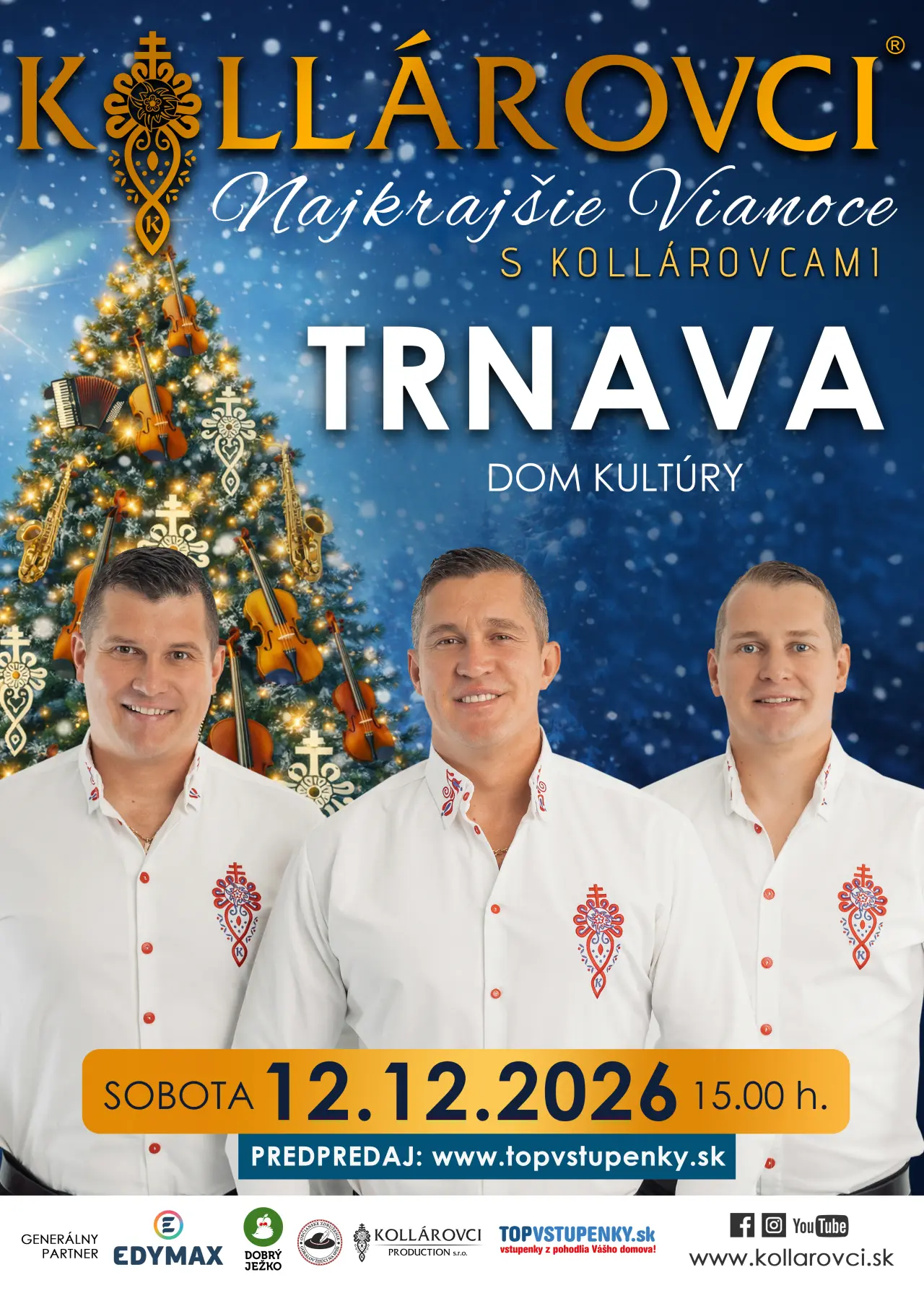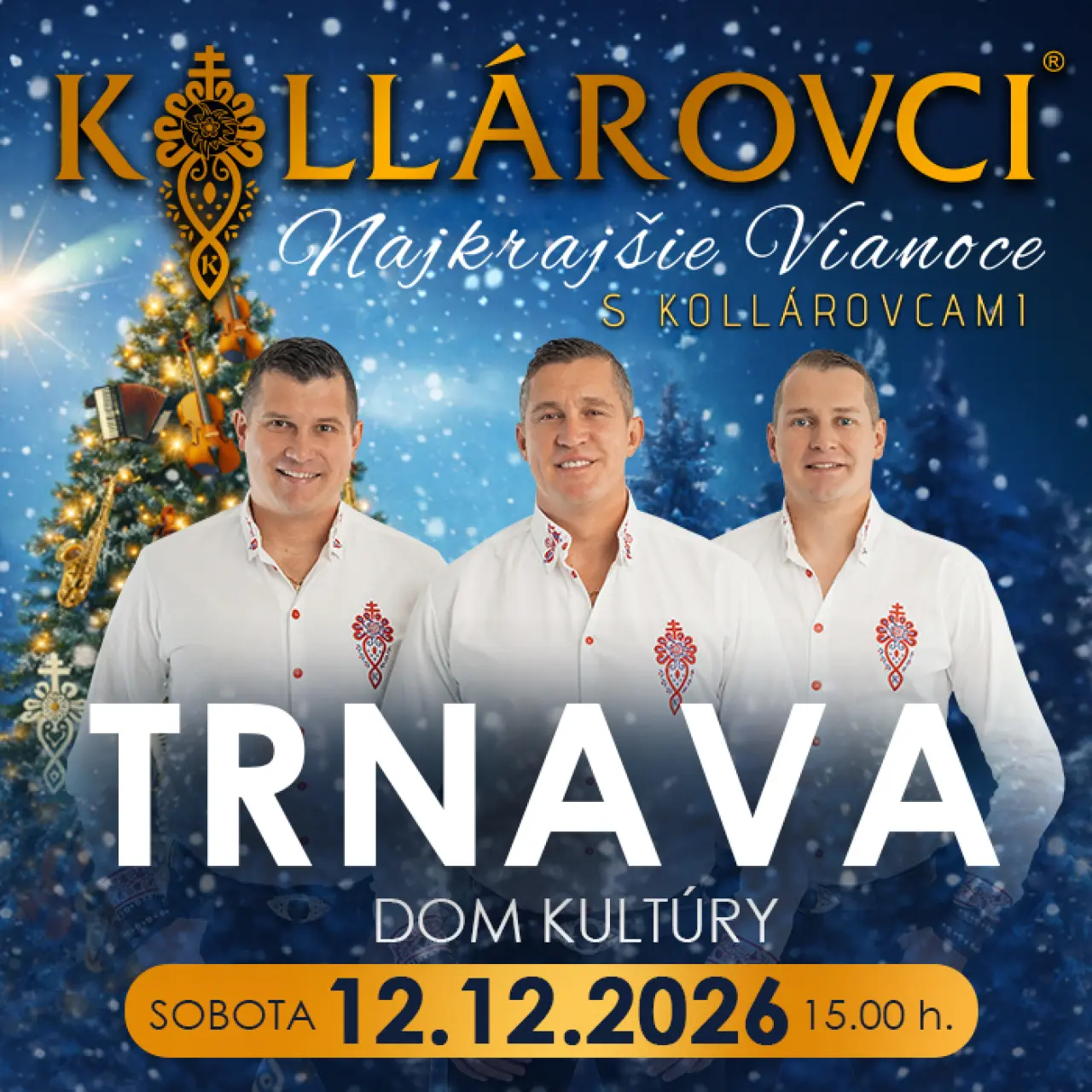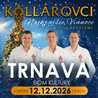 Priatelia, príďte aj Vy zažiť nádhernú vianočnú atmosféru v podaní kapely Kollárovci, kde zaznejú vianočné koledy a taktiež aj ich známe hity. Doprajte si predvianočné hudobno-zábavné uvoľnenie v podaní jedinečnej kapely KOLLÁROVCI, kde načerpáte veľa pozitívnej energie.
