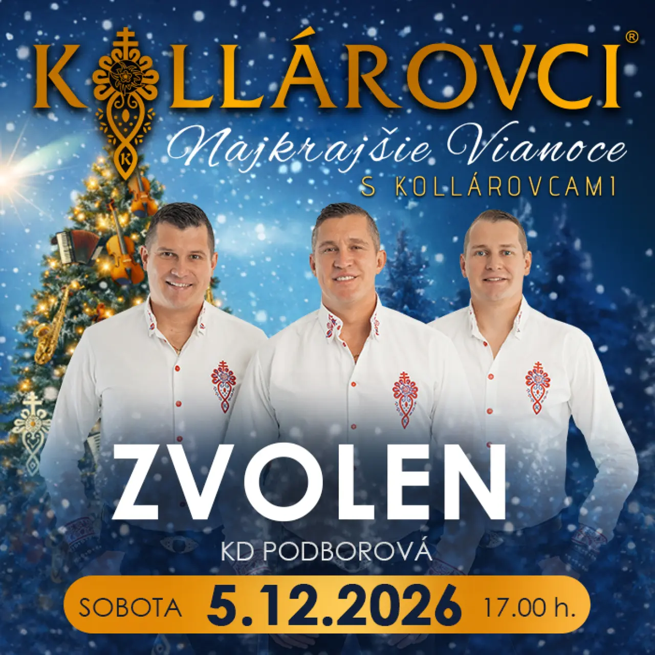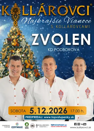 Priatelia, príďte aj Vy zažiť nádhernú vianočnú atmosféru v podaní kapely Kollárovci, kde zaznejú vianočné koledy a taktiež aj ich známe hity. Doprajte si predvianočné hudobno-zábavné uvoľnenie v podaní jedinečnej kapely KOLLÁROVCI, kde načerpáte veľa pozitívnej energie.