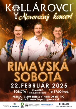 Priatelia, príďte aj Vy zažiť nádhernú novoročnú atmosféru v podaní kapely Kollárovci, kde zaznejú všetky ich známe hity. Doprajte si novoročné hudobno-zábavné uvoľnenie v podaní jedinečnej kapely KOLLÁROVCI, kde načerpáte veľa pozitívnej energie.